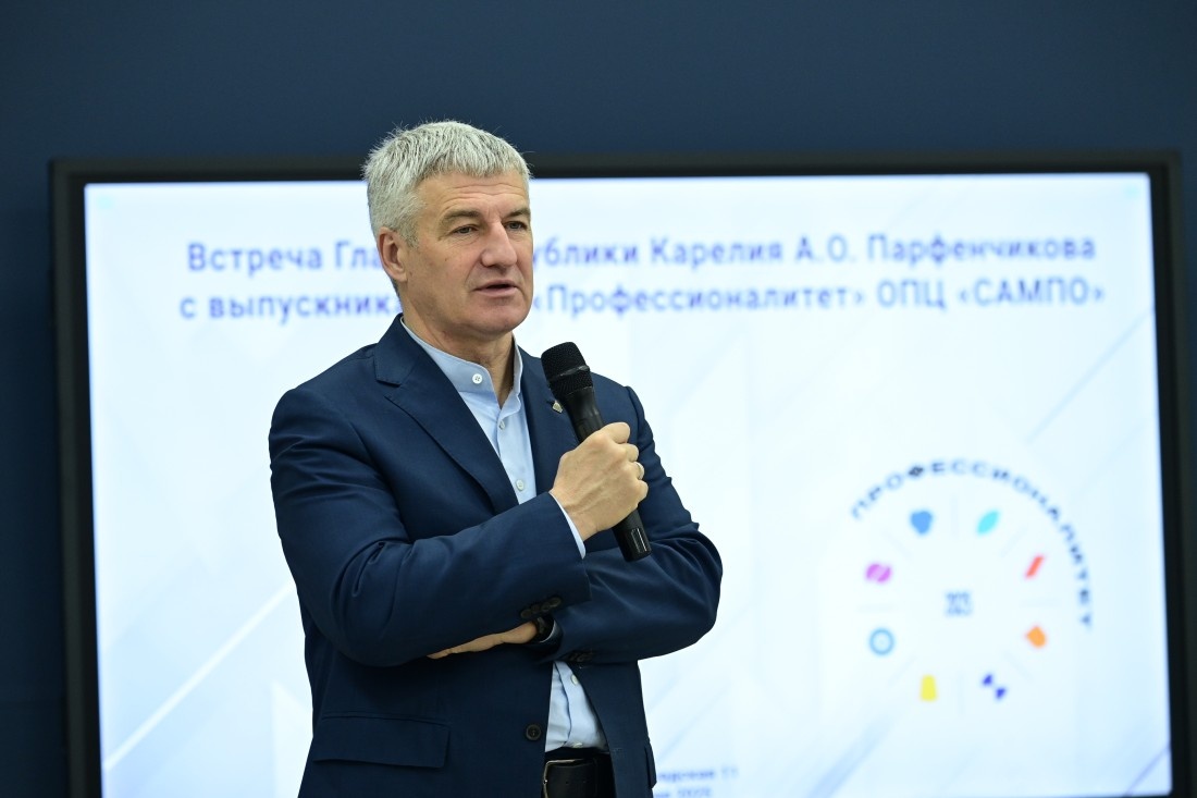 Карелия продолжит поддержку молодых специалистов рабочих профессий. Об этом рассказал Глава Карелии на встрече с будущими выпускниками техникума. 30 мая Глава Карелии Артур Парфенчиков провел встречу со студентами Петрозаводского автотранспортного техникума. В своем приветственном слове руководитель региона поздравил ребят с профессиональным праздником и отметил рост престижа среднего профессионального образования. – В Карелии рабочие профессии становятся хорошей стартовой площадкой для успешного трудоустройства и карьерного роста, – сказал Глава республики. – Сегодня в нашем регионе вновь активно развиваются исторические отрасли – лесная промышленность, машиностроение, литейное производство. Несмотря на высокий уровень роботизации производственных процессов для успешной работы предприятий требуются высококвалифицированные рабочие – сварщики, судостроители, сборщики металлоконструкций и многие другие. Артур Парфенчиков обсудил с ребятами перспективы развития промышленности в Карелии, м