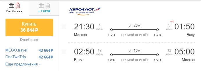 ✈️Москва - Баку (Азербайджан), прямой рейс, туда и обратно за 36850 рублей