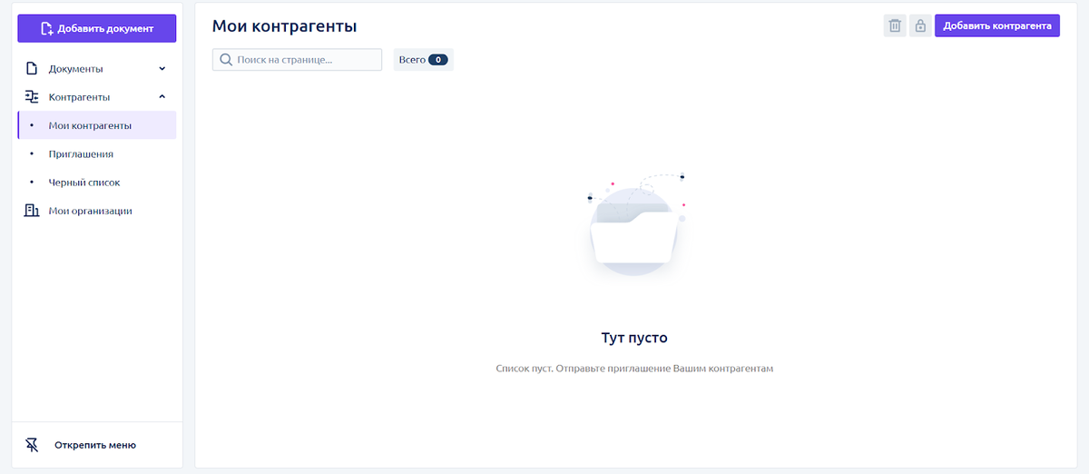 Как в сервисе Доки отправить приглашение контрагенту для обмена электронными документами через веб-интерфейс?