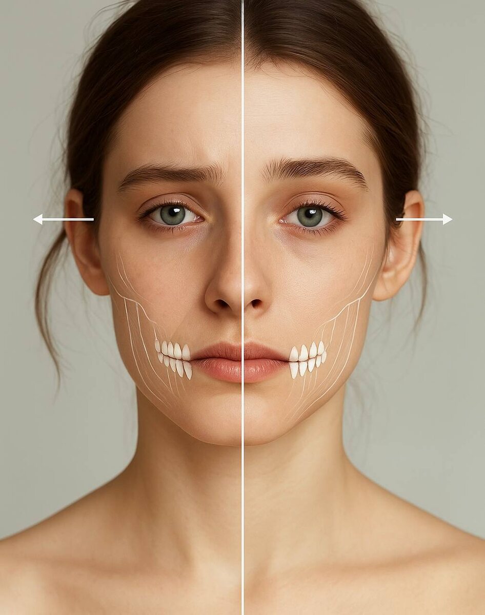 Почему лицо стало асимметричным? И что с этим делать? У вас бывало такое, что • на фото один глаз кажется меньше, • скулы как будто “разъехались”, • улыбка больше уходит в одну сторону, • макияж на одном веке ложится иначе, хотя ничего не меняли? И вроде бы ничего не болит, но что-то не так… ⠀ Почему это происходит на самом деле? Одна из часто недооценённых причин — височно-нижнечелюстной сустав (ВНЧС) и его дисфункция. ⠀ Когда сустав работает с перекосом — из-за стресса, прикуса, хронического зажима или даже после травмы — мышцы лица начинают работать неравномерно. ⠀ И вот результат: одна сторона лица становится более активной, вторая — «отстаёт», появляется визуальная асимметрия. Что говорят исследования? Это не теория. Это доказанный механизм. ⠀ В исследовании Journal of Oral Rehabilitation (2008) показано, что дисфункция ВНЧС снижает симметричную активность жевательных мышц и отражается на балансе мягких тканей лица. ⠀ А European Journal of Orthodontics подчёркивает: при см