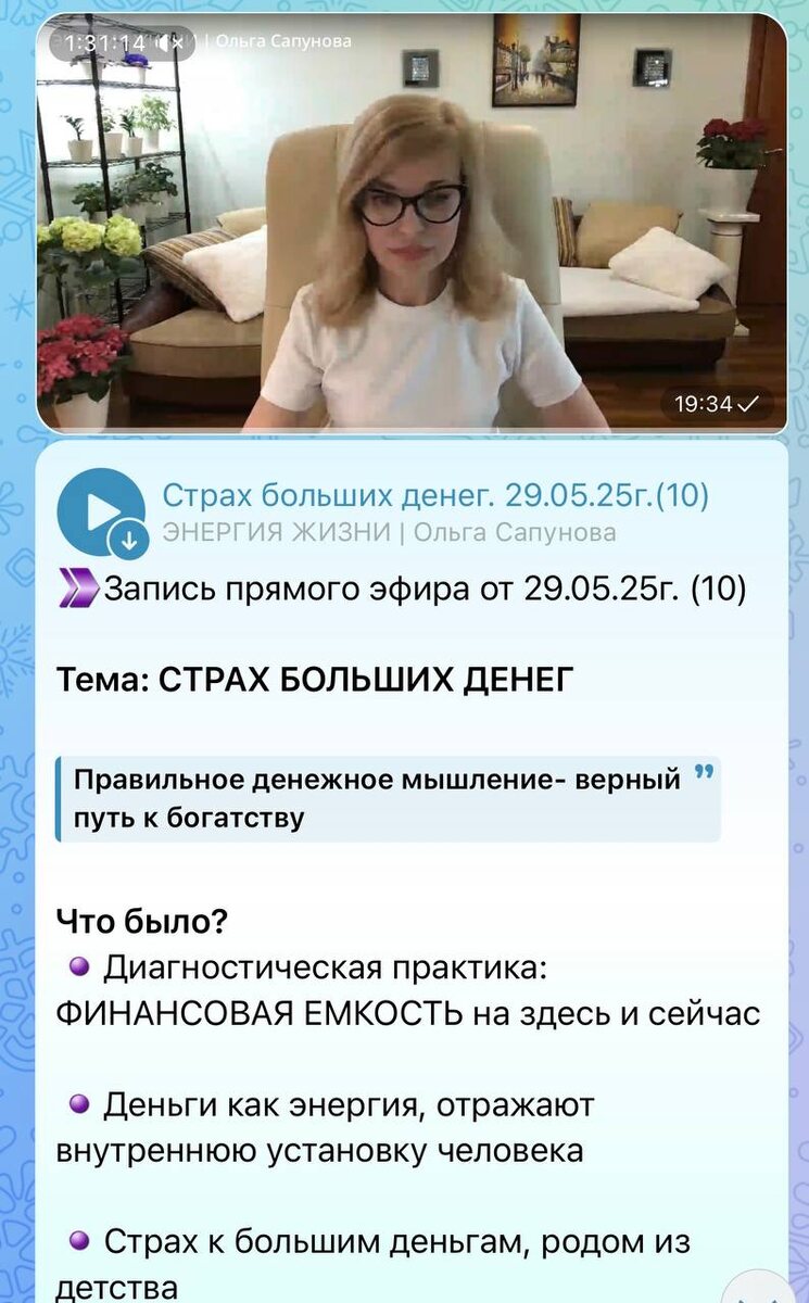 ⏭Ребята, запись прямого эфира от 29.05.2025г. уже доступна Тема: СТРАХ БОЛЬШИХ ДЕНЕГ Вы можете посмотреть в закрытом трансформационном клубе «ИСТОЧНИК СИЛЫ». 🟣🟢Записи всех эфиров, подкастов, голосовых чатов, экспертного контента находится в канале ➡️ «БИБЛИОТЕКА ЗНАНИЙ» ⬇️ Получить доступ к эфирам
