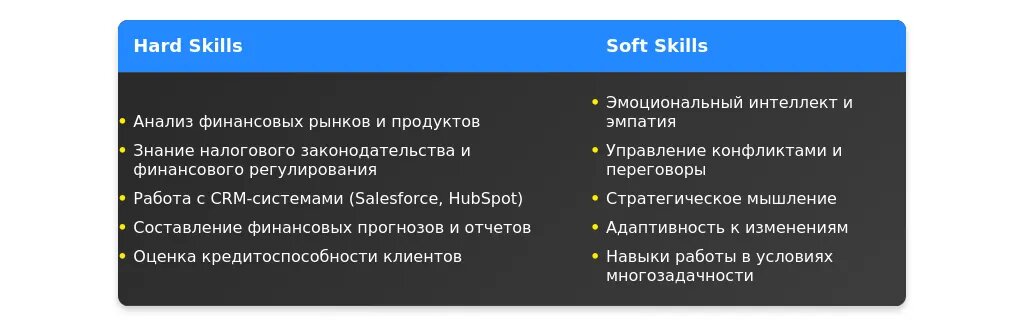Специализация: подчеркните, в каких областях вы наиболее сильны (работа с корпоративными клиентами, инвестиционные продукты).