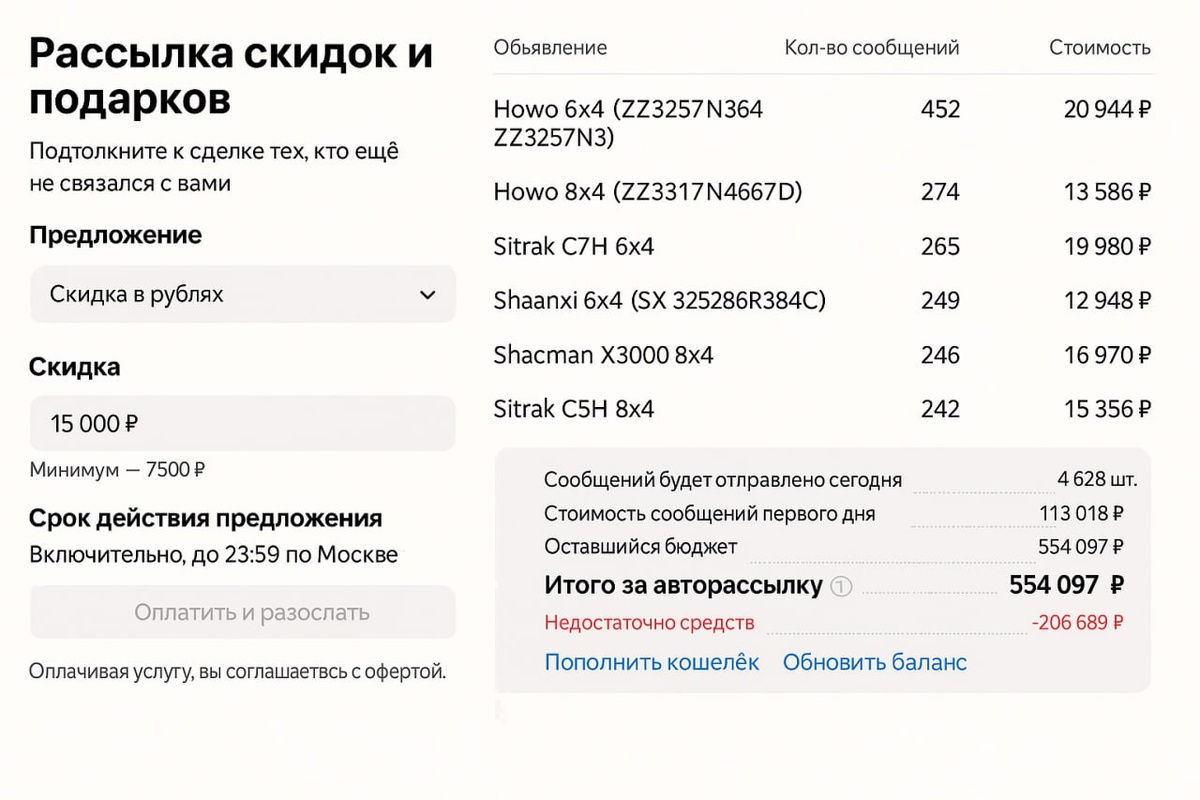 Вот стоимость обычной рассылки на Авито:
