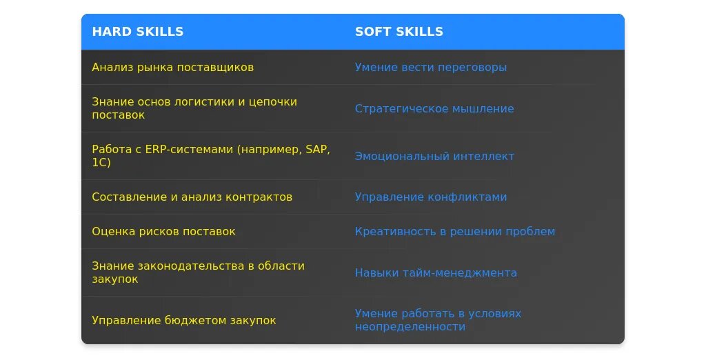 После: "Знание SAP, опыт ведения переговоров, анализ рынка поставщиков." Релевантные навыки.