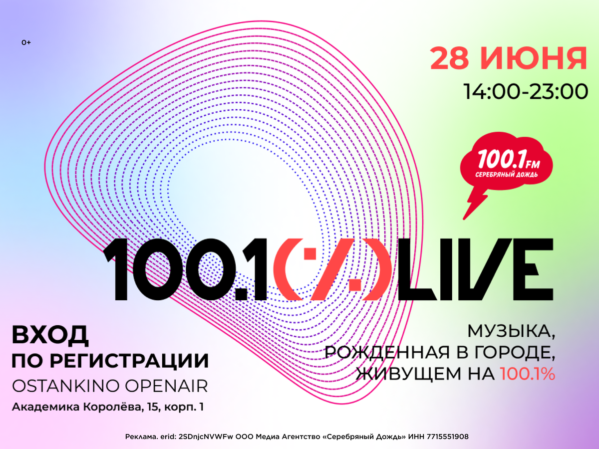 Останкино OPENAIR К 30-летию вещания Серебряный Дождь устраивает масштабный музыкальный фестиваль — 100.1 % LIVE. Это не просто юбилей, а благодарность городу и слушателям за десятилетия доверия и любви к радиостанции. Что ждет гостей: ⭐ Музыкальный лайнап с живым звуком