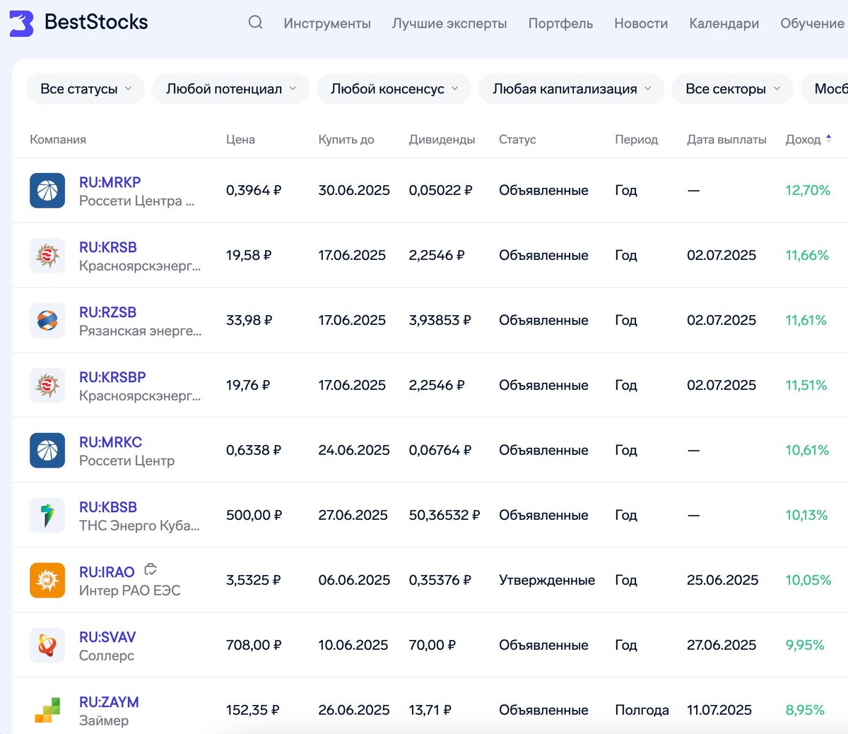 🔥 Подборка дивидендов в июне с самой высокой доходностью — до 12,7% 💰 @beststocksru