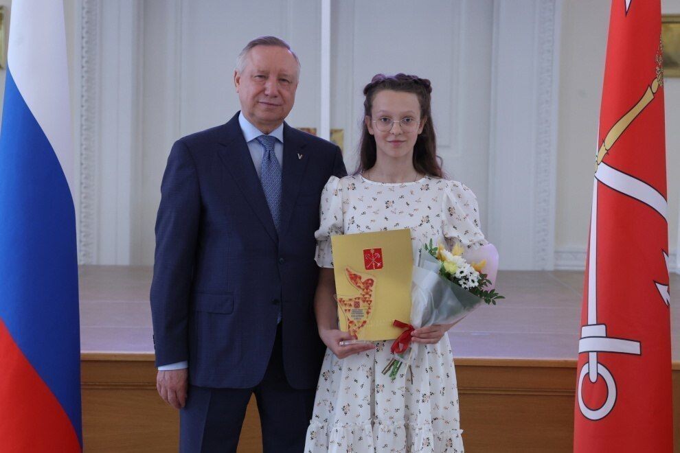 В Смольном 30 мая прошла торжественная церемония вручения премий правительства Петербурга «Юные дарования» и «Педагогические надежды». Их получили лучшие юные музыканты, танцоры, певцы и художники города, а также их учителя. Перед церемонией вручения премий Актовый зал Смольного был почти заполнен. Сюда пришли не только сами лауреаты, но и их родители. Взрослые, похоже, волновались перед вручением значительно больше, чем дети. Наконец, в Актовый зал вошел губернатор Петербурга Александр Беглов и вице-губернатор Борис Пиотровский, и церемония началась. Сводный хор исполнил «Гимн Санкт-Петербурга», а затем Александр Беглов вручил премии победителям конкурсов. Он отметил, что Северная столица дает своим юным жителям поистине уникальные возможности для творчества, потому что в нашем городе работают лучшие педагоги. Губернатор также напомнил, что город покупает на бюджетные средства для музыкальных школ и школ искусств самое современное учебное оборудование и музыкальные инструменты. «За пр