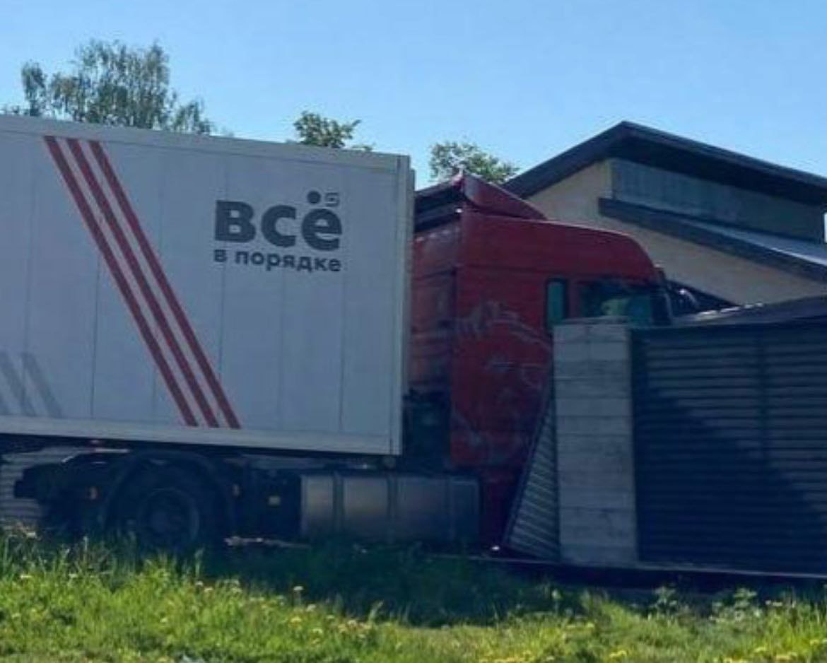 Фура с надписью "Все в порядке" снесла забор перед частным домом в пермской Добрянке и въехала в баню