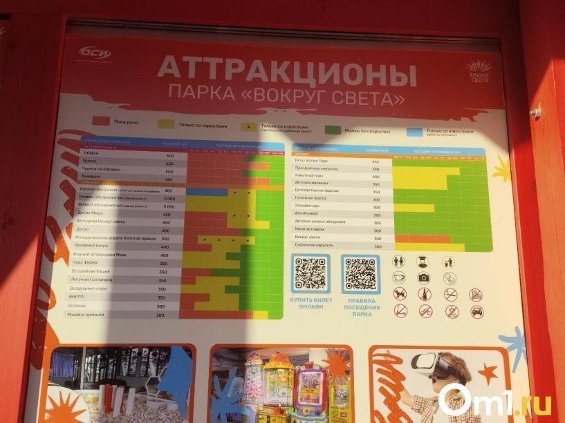 Порталу Om1.Омск стало известно, сколько стоят билеты на аттракционы в парке «Вокруг света». Администрация парка обновила прайс-лист. На экстремальные аттракционы, такие как «Тайфун», «Ураган», «Чудеса на виражах» и «Бумеранг», необходимо заплатить по 500 рублей за билет. Семейные аттракционы предлагают более разнообразные варианты, стоимость билетов на «Колесо обозрения» составляет 400 рублей за стандартную кабинку на шесть человек. Если вы хотите оформить посещение в ВИП-кабинке, то цена будет варьироваться: 2 000 рублей за шесть мест и 3 000 рублей за четыре места. Другие семейные аттракционы, такие как «Дикая мышь», «Автодром "Вокруг света"» и «Диско», стоят 450 рублей. Монорельсовая дорога «Золотой прииск», «Звёздный вихрь» и водный аттракцион «Маяк» обойдутся в 400 рублей. На такие развлечения, как «Чудо-ферма», «Волшебная башня», «Летучий Голландец», «Воздушные шары» и «ВВЕРХ!», цена билета составляет 350 рублей. «Котелки» и «Машина времени» стоят 300 рублей. Для самых маленьких