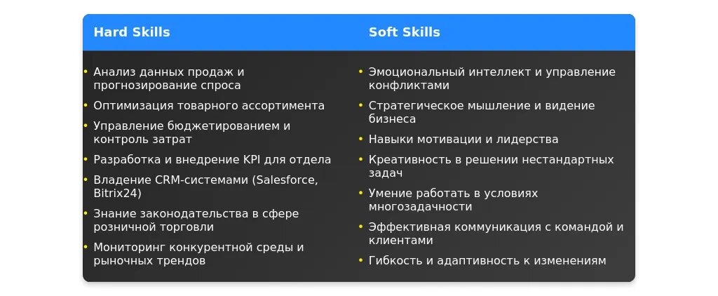 После: "Управление командой, аналитика продаж, работа с CRM-системами, стратегическое планирование."