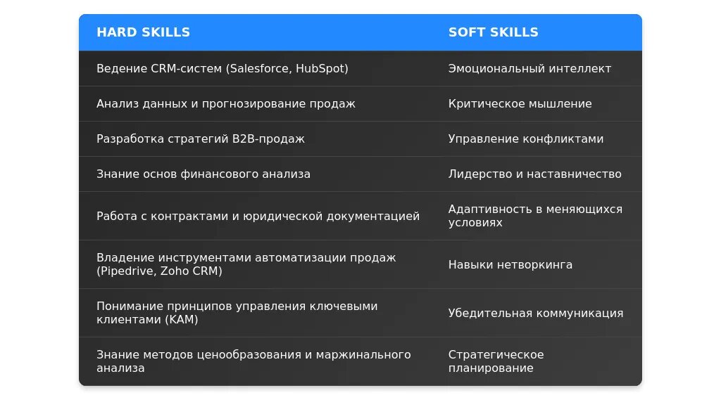 После адаптации: "Опыт работы с CRM-системами (Salesforce, Bitrix24), навыки управления командой продаж."