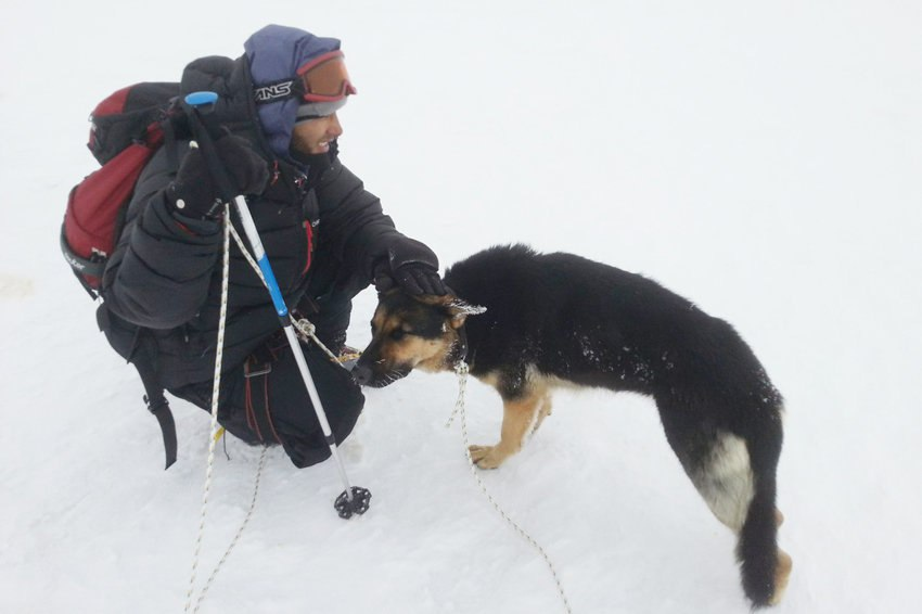 32-летний Андрей Орловский в полночь 29 августа вышел с группой из приюта «Бочки» на покорение западной вершины Эльбруса. Когда до цели оставалось идти от силы минут двадцать, он вдруг заметил собаку. Молодая немецкая овчарка в ошейнике, тихая и спокойная, пыталась бежать за людьми. Было уже около девяти часов утра, собака нас встретила на пологом участке перед вершиной, – рассказал Андрей. – Видимо, она поднялась сюда еще ночью следом за другими группами. Не знаю, как она пережила эту ночь. Я сам промерз до костей, будучи одетым во все теплые вещи, включая пуховик, пока топал наверх. Когда группа, покорив вершину, спускалась обратно, Андрей опять увидел дрожащую от холода овчарку. Животное пыталось ластиться к людям, но большинству туристов, мечтающих побыстрее спуститься в лагерь, было не до него. Понимая, что на этой «мертвой» высоте у овчарки шансов выжить нет, Андрей привязал страховочный трос к ошейнику собаки и повел ее вниз. Овчарка не возражала – явно домашнее животное беспрек