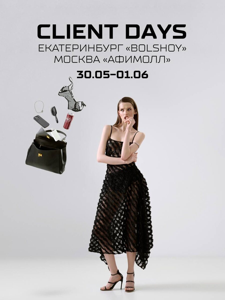 CLIENT DAYS в YOU WANNA 30.05–01.06 Екатеринбург — ТРЦ «BOLSHOY» Москва — ТРЦ «АФИМОЛЛ» Вас ждут: угощения и просекко, живая музыка. Подарки при покупке от 10 000 ₽: • Москве (АФИМОЛЛ) — футболки с драпировкой • Екатеринбурге— гольфы YOU WANNA Приезжайте — будет классно. Адреса: г. Москва, м. Деловой центр, Пресненская набережная 2, ТРЦ "Афимолл Сити", 2 этаж г. Екатеринбург, ул. Малышева 71, BOLSHOY универмаг, 2 этаж