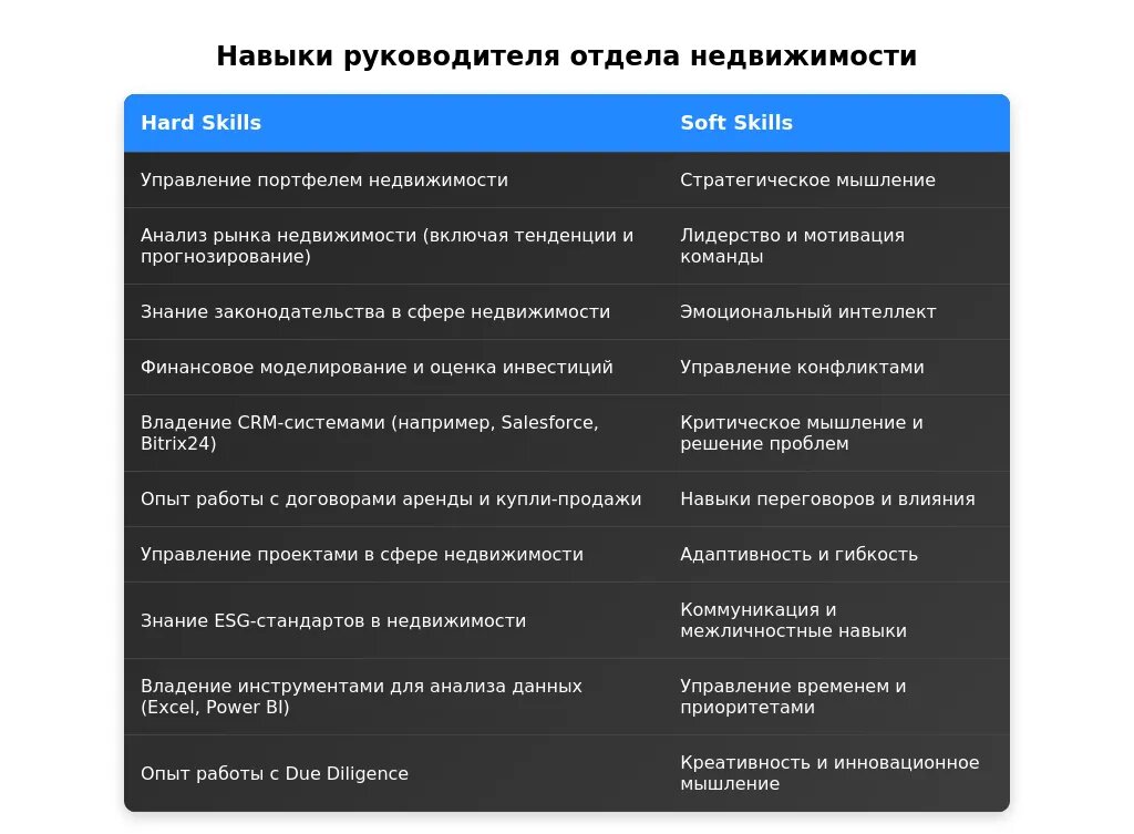 В 2025 году работодатели выделяют три ключевых навыка для руководителей отдела недвижимости: