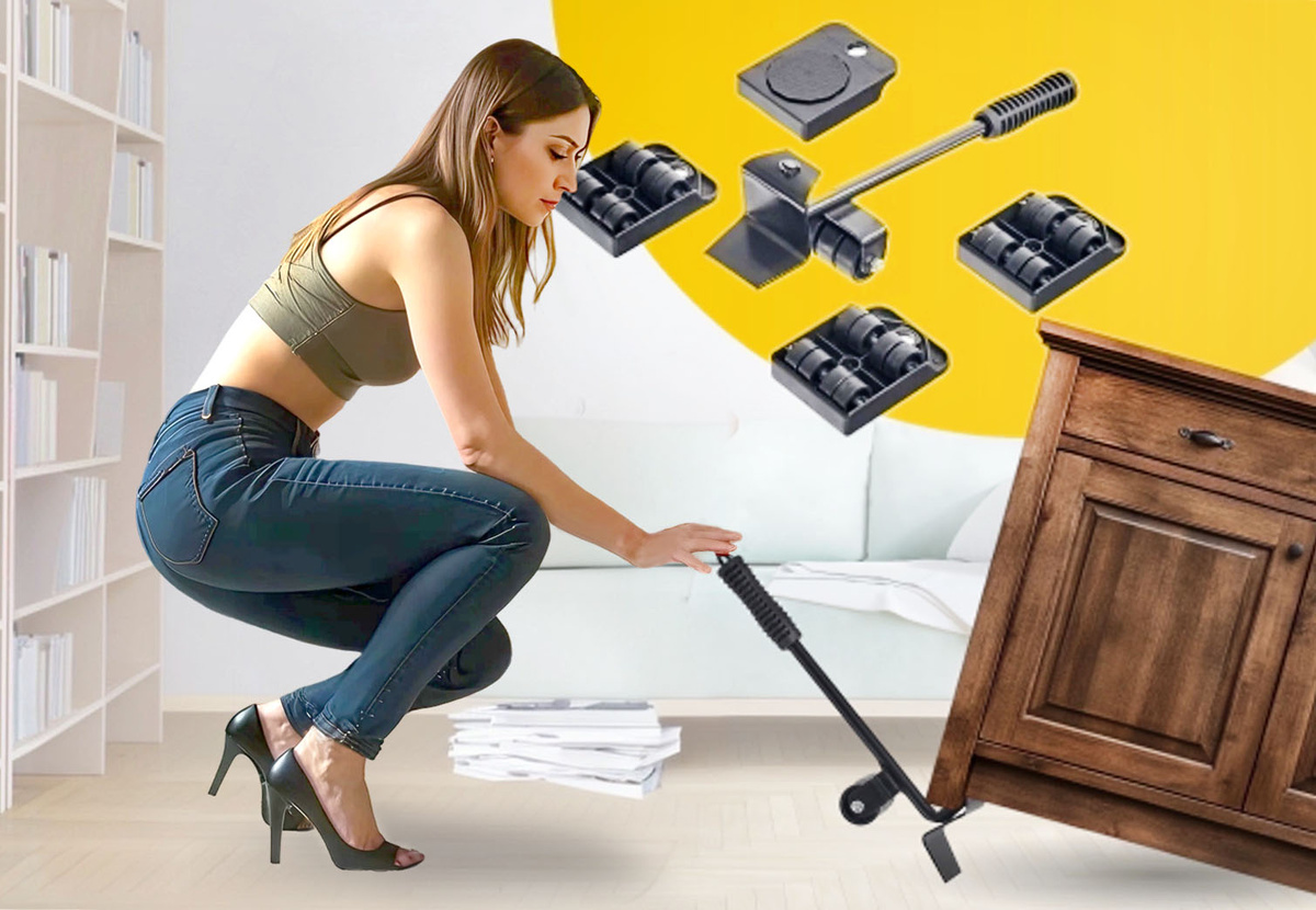 Затеяли генеральную уборку или готовитесь к переезду? Желаете украсить свое пространство новой мебелью или просто хотите освежить интерьер вашего жилья? Попробуйте заранее угадать, что вас ждет: царапины на полу и стенах, непомерные расходы на услуги грузчиков или, если решите действовать самостоятельно, — усталость и надорванные спины. Одного лишь представления о занимательном процессе перестановки может хватить, чтобы понять, что это займёт всё ваше свободное время и силы. Но не стоит отчаиваться! Мы представляем вам оригинальное решение для всех вышеперечисленных проблем — набор для перемещения мебели «ТРАНСПОРТЁР». Это истинное спасение для каждого, кто когда-либо сталкивался с перемещением мебели! Легко и просто! С «ТРАНСПОРТЁРом» работа по перемещению мебели превратится в удовольствие. Не придется мучиться и вынимать вещи из шкафов — просто облокотите вашу мебель на специальный рычаг, и подложите платформы с вращающимися колесиками под каждый угол. Теперь всё готово для приятного
