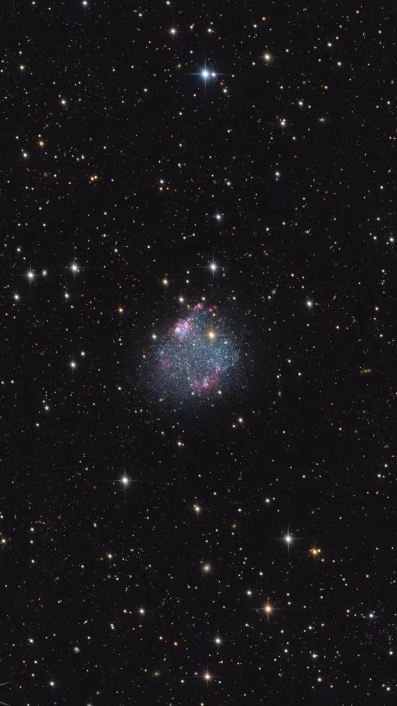 Маленькая, но активная: карликовая галактика Секстанс A формирует звезды в компактной области всего 5000 световых лет. Она находится на окраине нашей местной группы, в 4,5 млн световых лет от Земли.