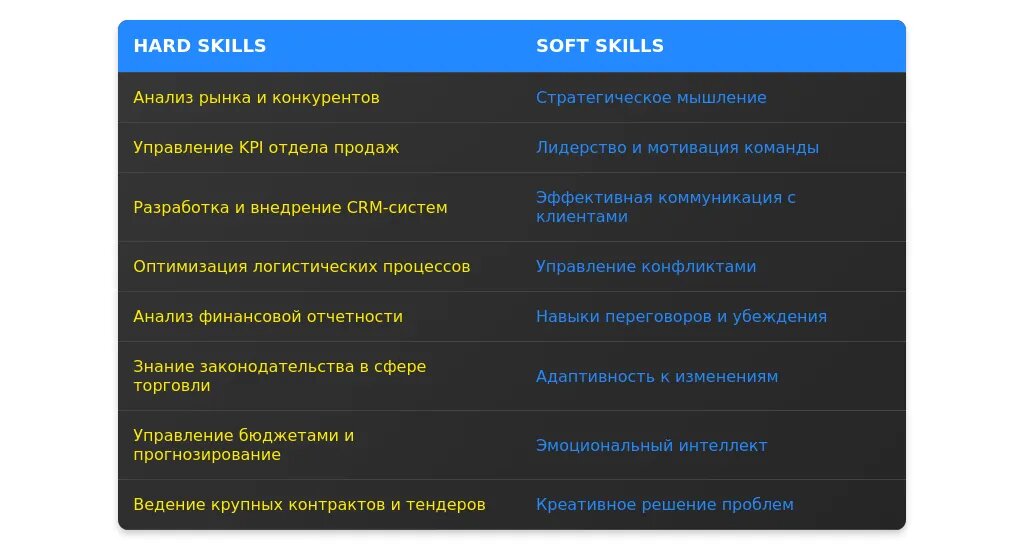 Навыки должны быть перегруппированы так, чтобы соответствовать требованиям вакансии. Например, если вакансия требует знания CRM, этот навык должен быть на первом месте. Также важно выделить требуемые компетенции, такие как управление командой или работа с крупными клиентами.