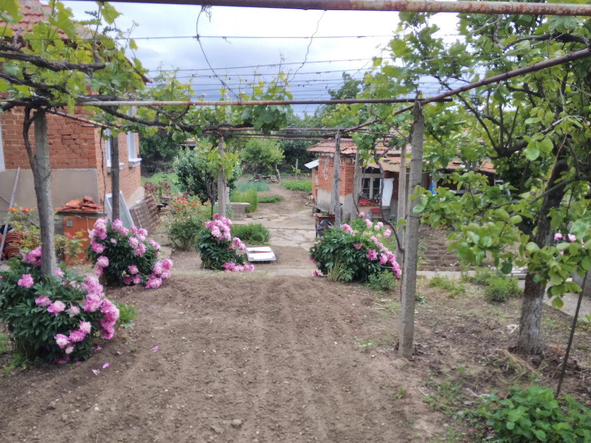 Вот и заканчивается прохладный дождливый май. Ирисы уже почти все отцвели, пришло время пионов. Они есть почти во всех дворах, в основном одного сорта- светло- розовые. Мне от прежней хозяйки достались белые . Со временем разжилась ещё пионами темно- розового и вишнёвого цвета. А прошлой осенью выменяла на отводок своего белого пиона и светло- розовый. Сейчас он выдал первый цветок. Жары нет, цветут пионы пышно и на редкость долго. В прохладной погоде есть и свои плюсы. Только вот скоро мне опять надо будет выкашивать участок. Это уже в восьмой раз за весну. А что делать, трава растёт с бешеной скоростью. Встретила вчера односельчанина Христо. У него проблема. Как оказалось, ещё в начале апреля он подобрал возле магазина истощённого щенка со страшнейшим рахитом. Это уже второй случай , когда у нас в селе выбрасывают щенка с такой патологией. Первого забрала Ольга, наша рускиня. Щенок весил 4,5 кг. Ветеринар определил по зубам, что щенку около полугода и сказал, что тот если и выр