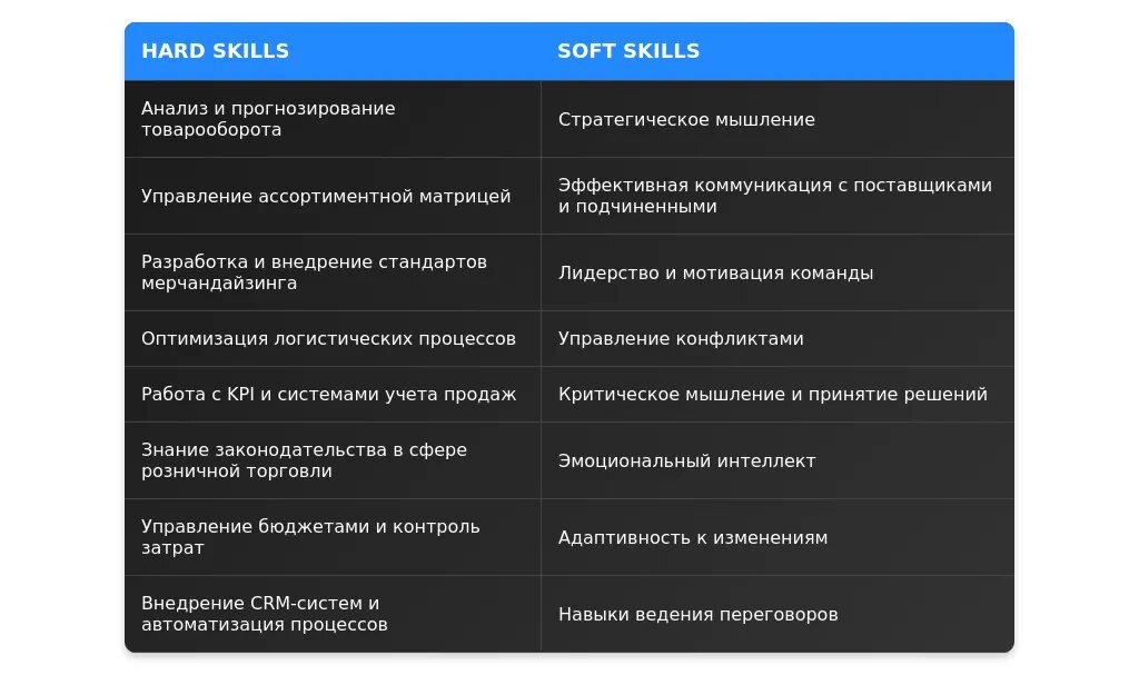 Технические навыки для начальника отдела розничной торговли