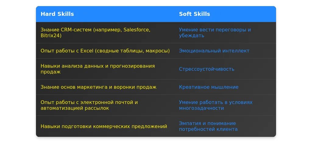 После адаптации: "Знание английского языка, опыт работы с CRM-системами, навыки ведения переговоров."