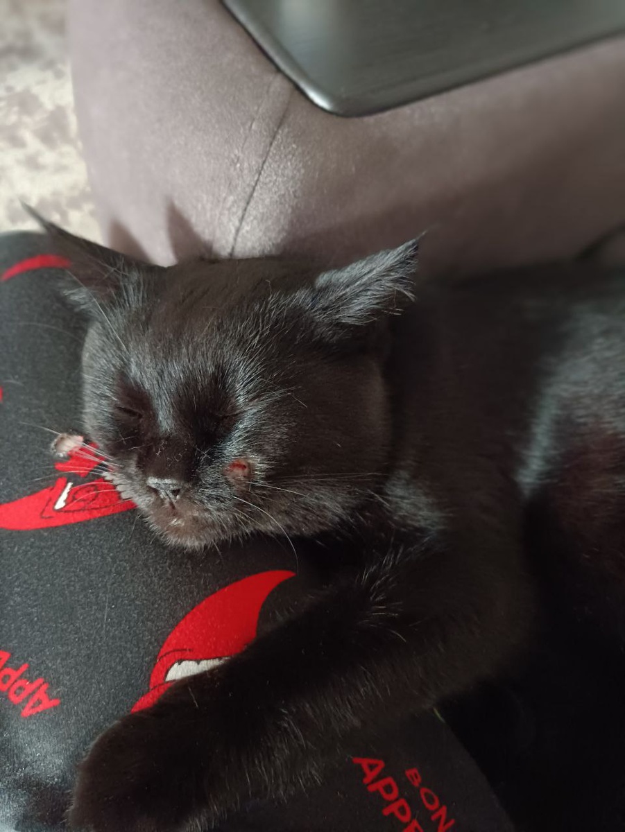 Кот Кузьма пришёл отдохнуть после боевых походов🐱