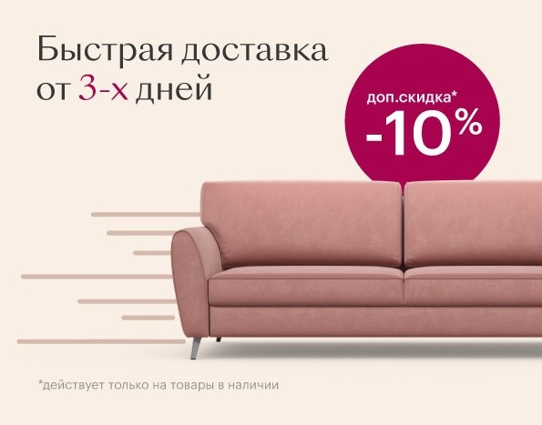Ищете новый диван? Сейчас самое время! Только до конца июня у вас есть отличная возможность приобрести товары из наличия с дополнительной скидкой и с быстрой доставкой от 3-х до 5-и дней. Ищите модели со значком «3 дня» — именно на них действует спецпредложение! Количество товаров ограничено — успейте выбрать! Все детали смотрите на сайте https://www.moon.ru/offers/campaigns/dop-skidka-i-bystraya-dostavka