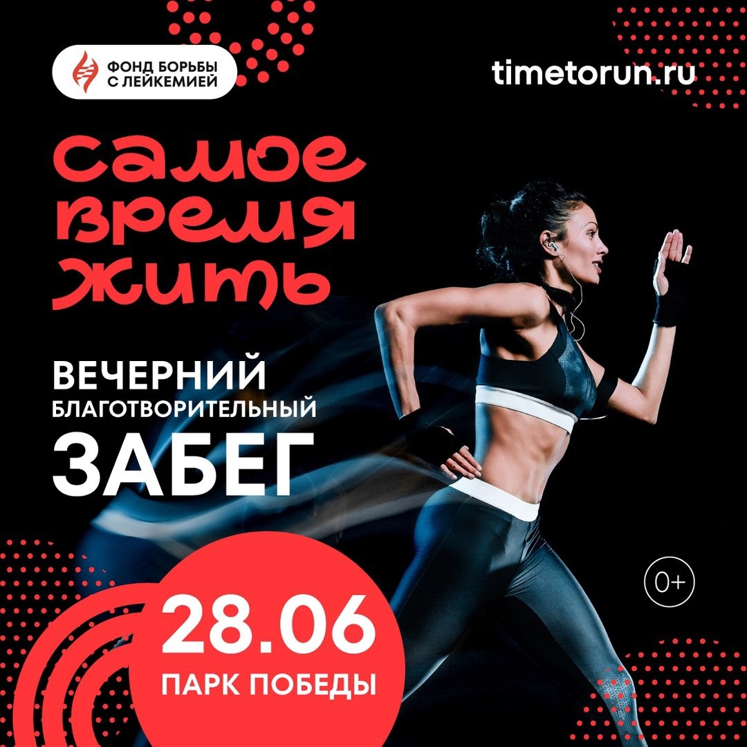 Забег «Самое время жить» от Фонда борьбы с лейкемией– это лето, закатное солнце, трасса, сотни бегунов, объединенных одной целью. В этом году он впервые пройдет в вечернем формате. Это будет настоящий праздник спорта и благотворительности — в завершении мероприятия пройдет яркий концерт. https://www.xcsport.ru/news/news_7977.html