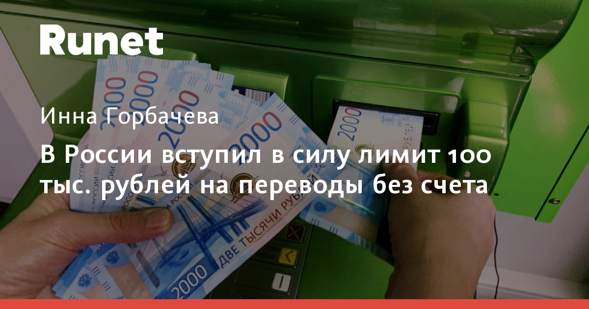 В России вступил в силу лимит 100 тыс. рублей на переводы без счета