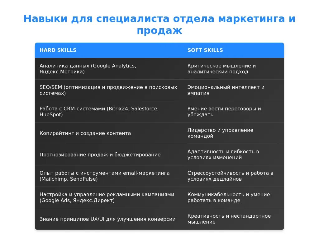 Анализ вакансии для специалиста отдела маркетинга и продаж