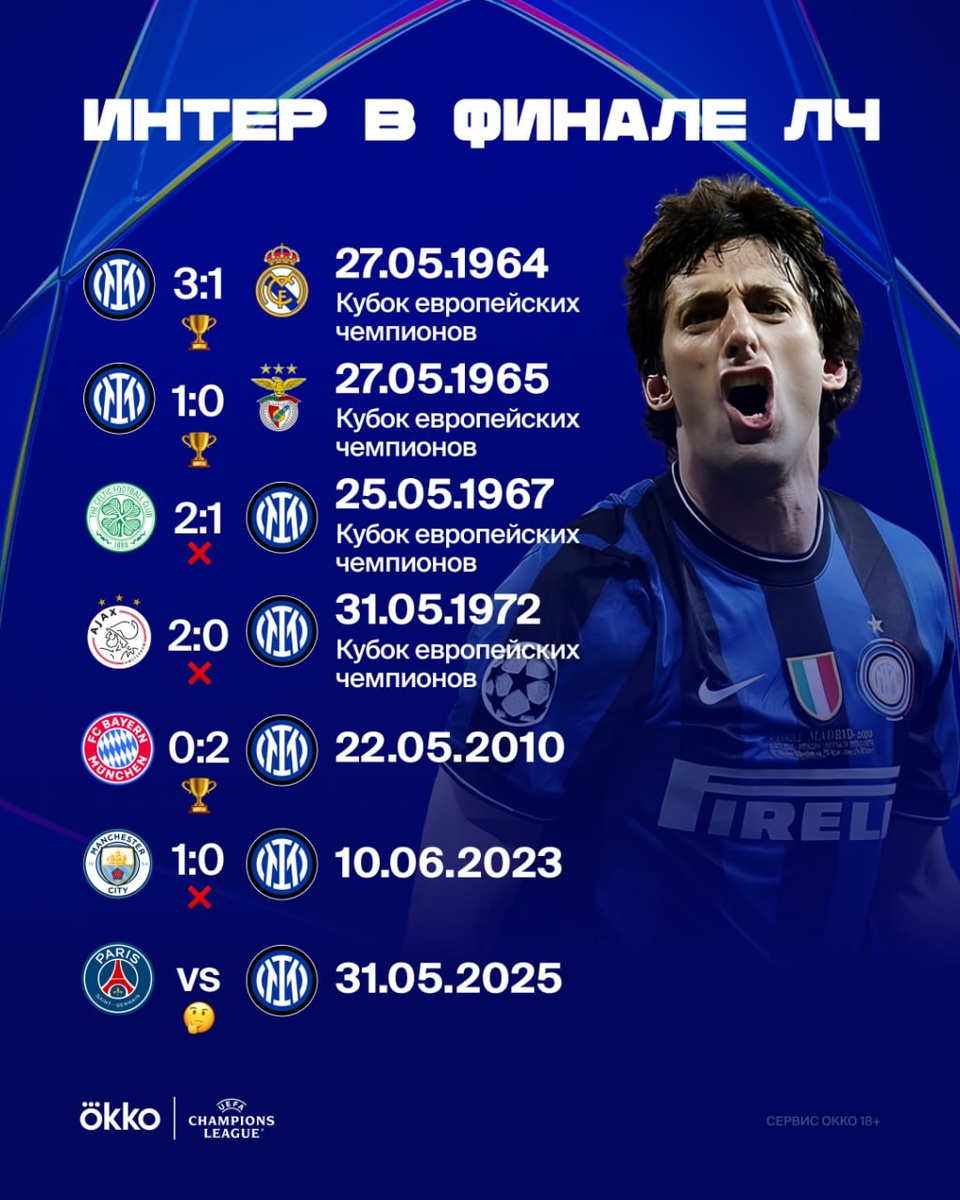 «Интер» — клуб с великой историей в еврокубках. «ПСЖ» только в начале пути 🏆