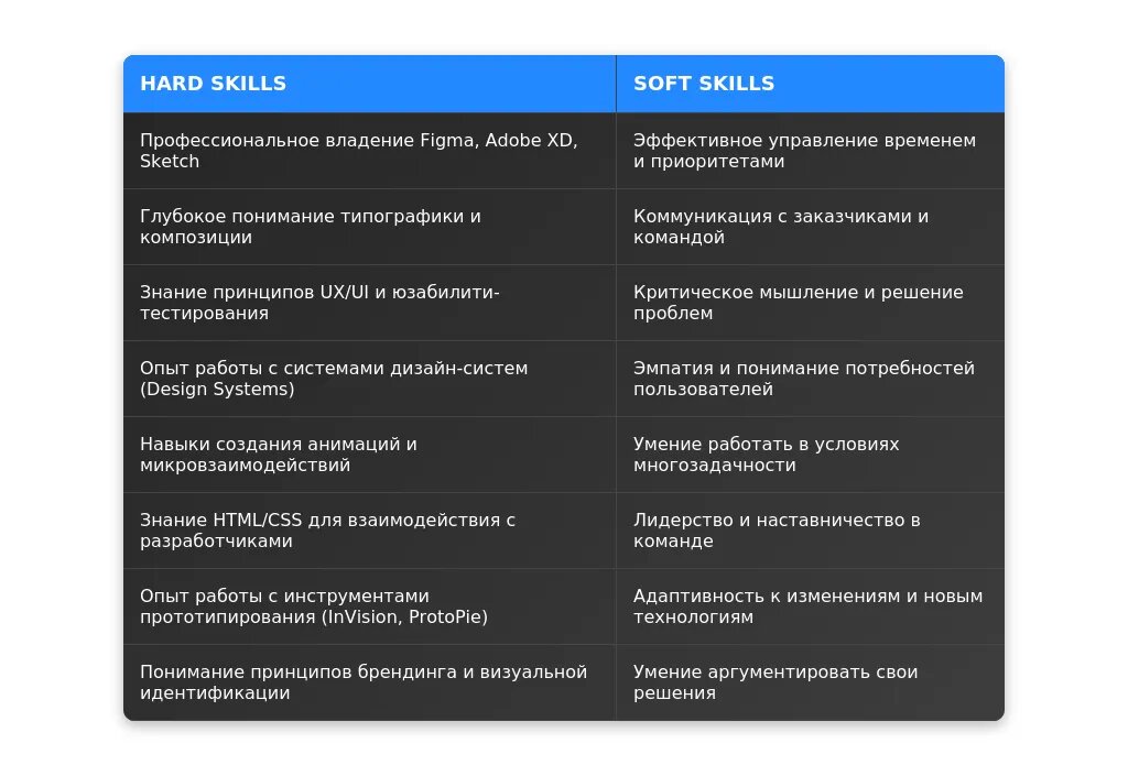 После: "Figma, UX-исследования, создание дизайн-систем, Adobe Creative Suite."