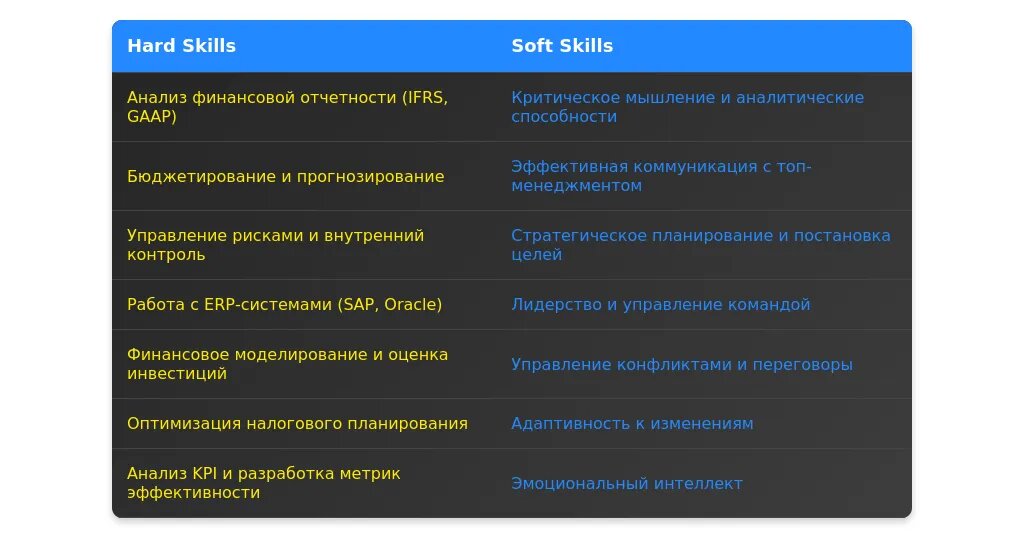 При анализе вакансии первым делом необходимо выделить ключевые требования. Обратите внимание на обязательные условия, такие как образование, опыт работы, владение специализированными программами (например, 1С, SAP) и знание стандартов финансовой отчетности (МСФО, РСБУ). Желательные требования могут включать наличие сертификатов (CFA, ACCA) или опыт работы в определенной отрасли. Важно также анализировать "скрытые" требования, которые не прописаны явно, но могут быть выявлены через ключевые слова в описании вакансии, такие как "навыки управления командой", "опыт внедрения процессов" или "умение работать в условиях неопределенности".