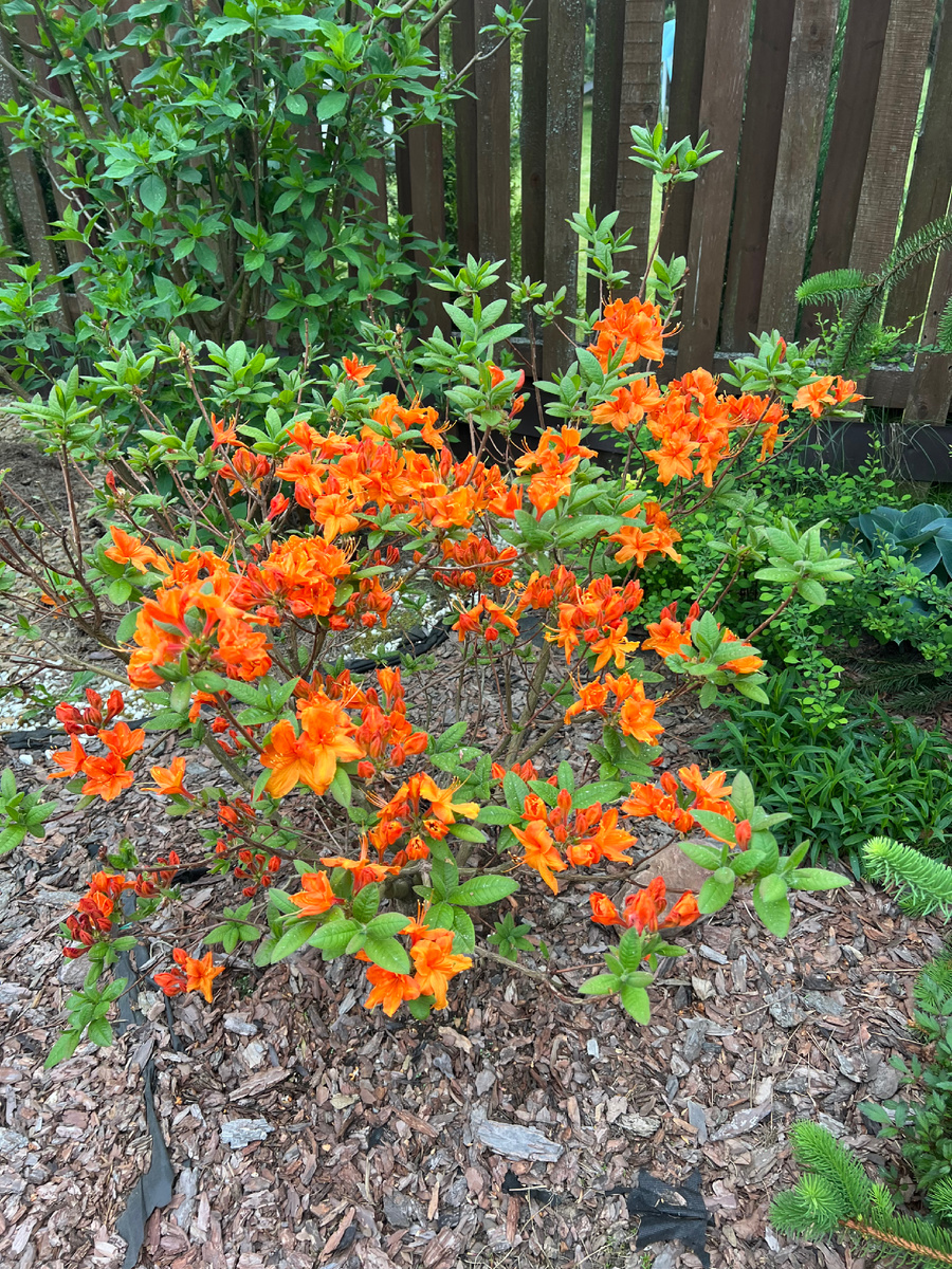 Я достаточно спокойно отношусь е Рододендронам и Азалиям. Мало тени у меня для них. Но как бывает, пришла в местный питомник «не вовремя» и увидела эту цветущую красотищу Главное цвет покорил меня сразу и купила ее за какие-то копейки. Почему-то питомник от них избавлялся, жара стояла, отцветают быстро, а не цветущую купит только тот, кто ищет именно эти сорта. Азалия- листопадный куст и на зиму я ее укрываю. Делаю домик из опор и в один слой лутрасилом 120 г/ м. Укрытие не снимаю до настоящего тепла, пока не закончатся заморозки. Не большие минусы ей не страшны, но зимой цветочные почки замерзнут быстро, а весной засохнут. Сразу после цветения займусь обрезкой веток, которые уже отцвели. Азалия начнет набирать бутоны на следующий год, поэтому формировать ее надо вовремя, не опоздать. Азалия любит кислый грунт, поэтому весной подкисляю и кормлю ее удобрением для гортензий. Обязательно слежу за влажностью грунта около нее, всегда говорю - хотите чтобы быстрее зацвел любой куст, цветок