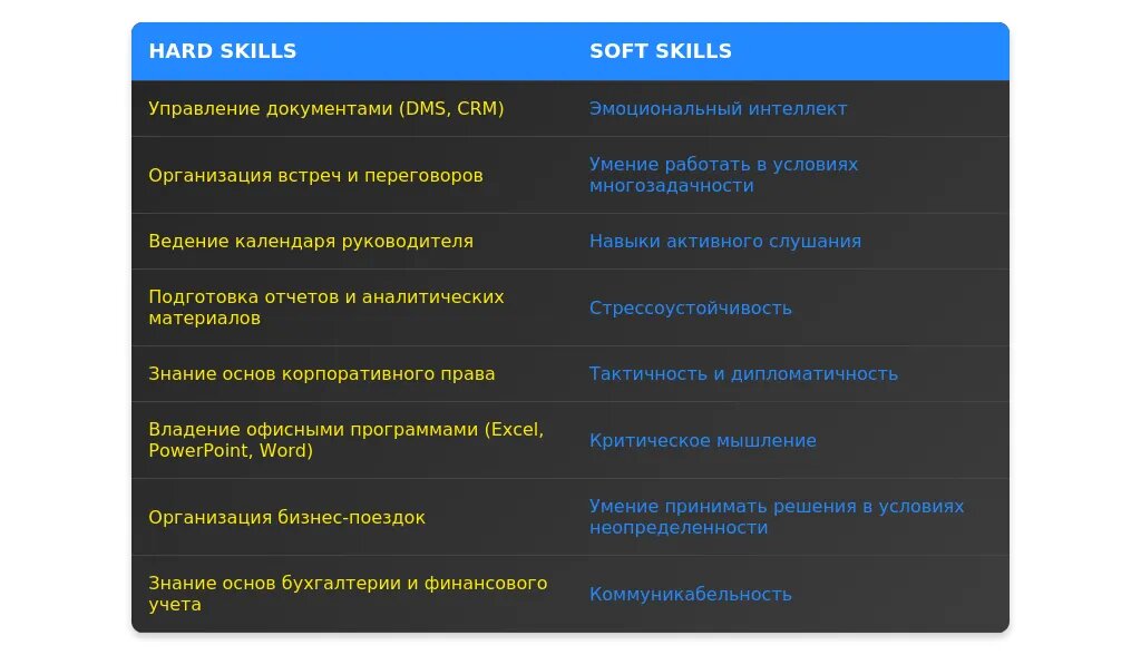 - Акцент на базовые навыки: владение офисными программами, организационные навыки.