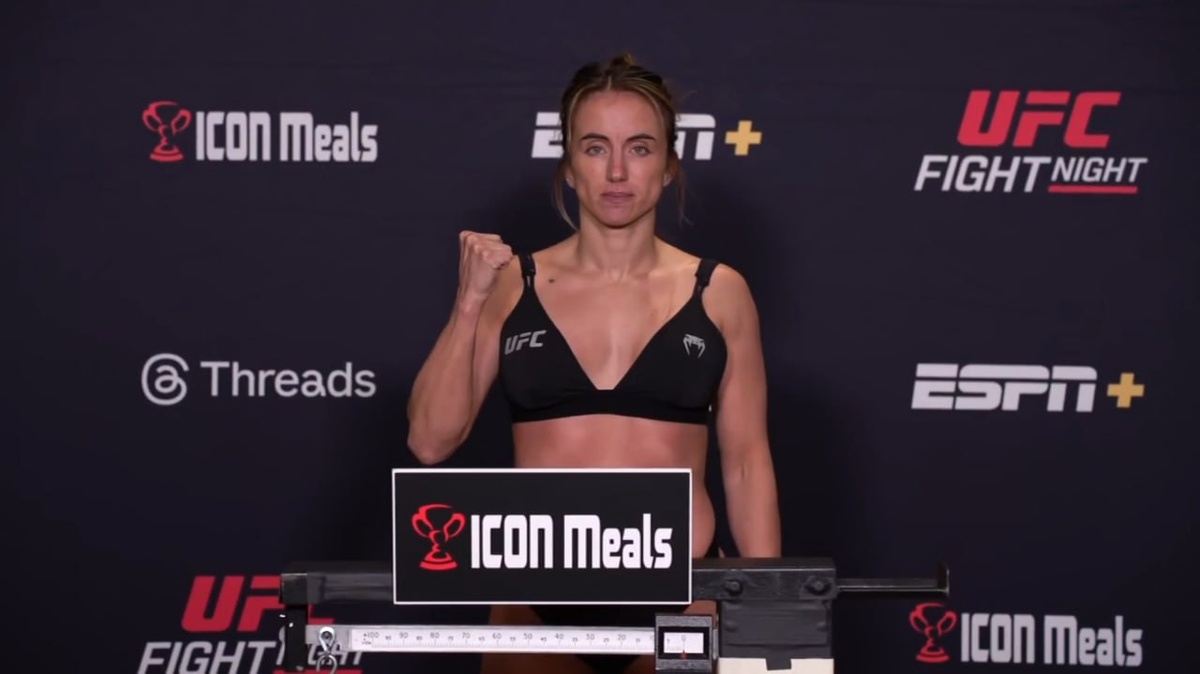 Барбер прошла процедуру взвешивания. Ее вес составил 57,4 кг (она не уложилась в лимит весовой, однако поединок остается в силе) ‼️