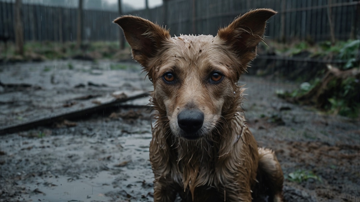 На заброшенном пустыре, почти слившись с окружающим пейзажем, сидел он. Лапы поджаты, уши прижаты, шерсть — мокрая, свалявшаяся. Взгляд — будто пустота. Ни злости. Ни надежды. Только... ожидание конца.