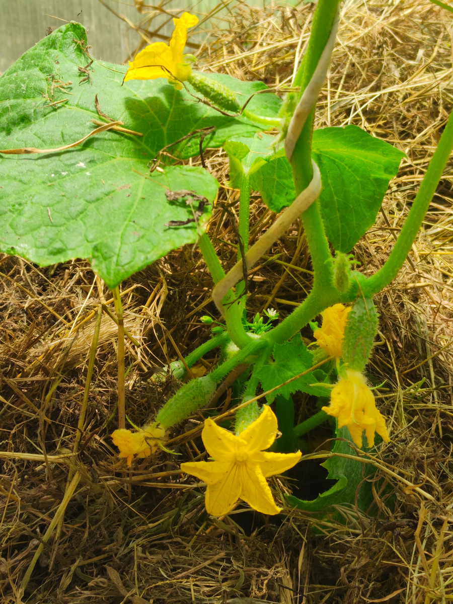 Они не большие, но есть!)) Радуюсь всему и благодарю) Дошли мои руки до укрытия растений сухой травой в теплице. Муж скосил траву, сын собрал её в стога, Альфа с Бертой некоторые из них разворошили и снова укрыли землю травой)) Они играли, носились по скошенной траве, а потом вальяжно лежали на ней) Сегодня мои руки дошли и укрыли всю территорию теплицы)) А в теплице уже появились маленькие огурчики, скоро будем есть. Растут: перчик, помидор и базилик) Базилик я кладу в чай) мне очень нравится ) Горох наливается! В этом году посадили мало, в том году объедались, гороха наросло много!))) Сажаем густо, поэтому и много) Он такой молочный, вкусный, нежный! Грецкий орех большой стоит с плодами! Красавчик! Виноград такой смешной, мелкий ещё совсем))) Ух, сколько зелени: листья зелёные, плоды зелёные))) Мне нравится смотреть на молодое весеннее пробуждение. Разбавлю зелень красным цветом)) Черешня, что ближе к дому краснеет и её больше той, которая растёт дальше от дома. Я заметила, у до