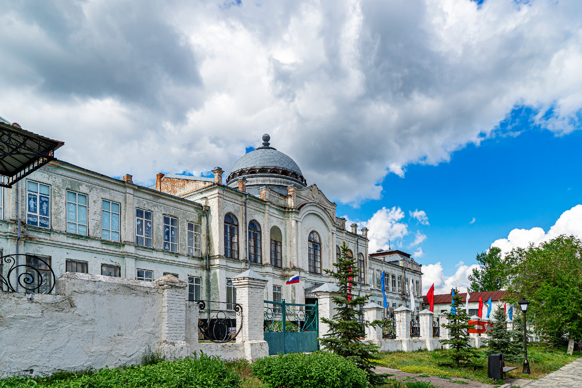 Самое впечатляющее здание здесь - Духовное училище. Строилось оно до полного завершения ансамбля долго.