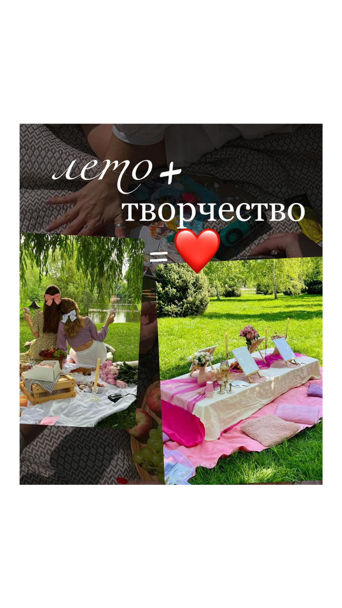 Арт-пикник – идеальный формат для летнего Дня рождения или девичника! 🌸🎨 Почему это круче обычного застолья? ✔ Свежий воздух + творчество - совмещаем отдых на природе с вдохновляющим досугом. ✔ Яркие эмоции и фото – картины, созданные своими руками, станут необычными «сувенирами» с праздника. ✔ Активность без суеты– спокойная атмосфера, но с элементами игры (например, рисование с закрытыми глазами или совместный холст). Как организовать арт-пикник? Обратитесь к нам 🌸 Пикники в цветущих парках 🌸 Творческие мастер-классы под открытым небом 🌸 Новые знакомства и душевные разговоры 🌸 Невероятные снимки от проф. фотографа И, конечно, энергия, которую дарит только лето! 5 причин выбрать арт-пикник: 1. Небанально – вместо караоке и квизов будет душевное творческое общение. 2. Для любого возраста – подойдет и для девичника с подругами, и для семейного праздника. 3. Гибкий бюджет - можно ограничиться холстами и красками или добавить кейтеринг и дополнительные развлечения. 4. M