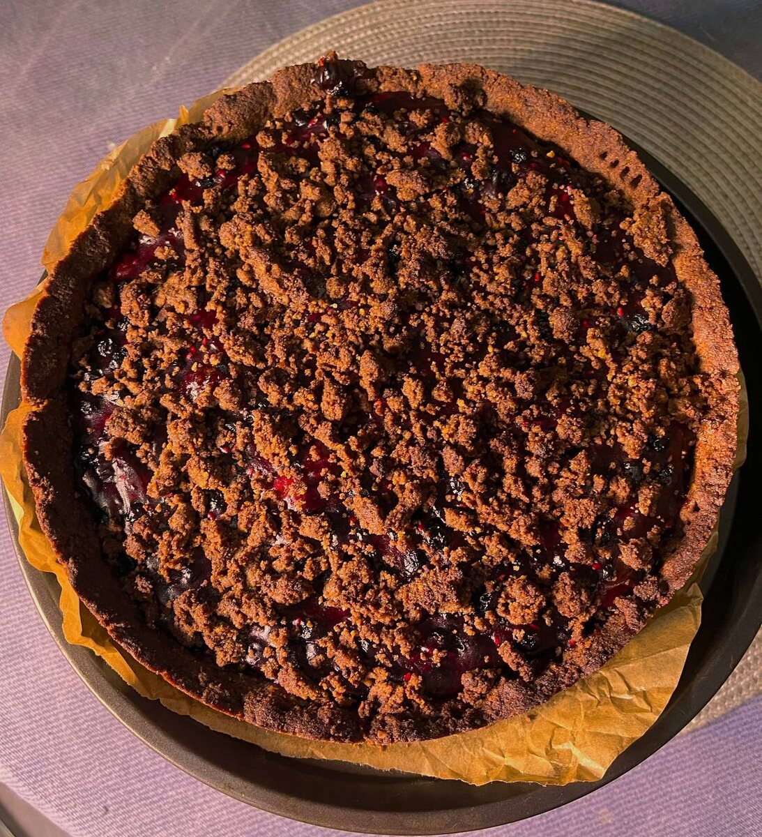 Хотите приготовить быстрый и простой десерт, который понравится вам и вашим близким? Этот ягодный тарт — отличный выбор! Минимум усилий, максимум свежести и вкуса. Готовьте вместе со мной и наслаждайтесь летним настроением в каждом кусочке! Для этого рецепта понадобится: 1. Тесто 400 граммов шоколадного печенья 130 граммов размягченного сливочного масла 1 яйцо 2. Начинка 600 граммов любых ягод, что найдете, в моем случае это остатки черной смородины, вишни и малины из заморозки. Сахар по вкусу ( поменьше, если хотите с кислинкой, побольше, если любите слаще) 40 граммов кукурузного крахмала 250 граммов (1 баночка) детского фруктового пюре (я использовала фрутоняня яблоко-малина со сливками) Итак начнем приготовления. Заранее достаньте из морозилки ягоды размораживаться при комнатной температуре. Перейдем к тесту. В блендере измельчите все печенье в крошку, пересыпьте в миску. Туда добавьте масло и начните растирать руками. Не должно остаться комочков. Масса должна стать однородной, но
