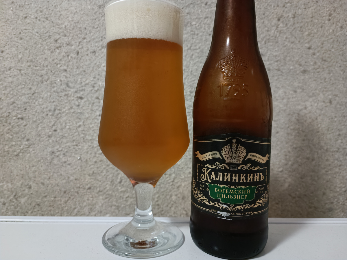 Сегодня у меня в бокале новинка от Объединённых Пивоварен под названием Калинкинъ. Сварено как нетрудно догадаться из заголовка в стилистике чешский пилснер. Информация из антапт: Классическое светлое пиво низового брожения, сваренное в чешском стиле. Насыщенный солодовый вкус и благородная горчинка делают пиво мягким и сбалансированным. Плотность этого пива – 12%, что считается эталоном для стиля пильзнер и делает вкус богатым и округлым. Энс. 12 Алк. 5 Бутылка объёмом 0.4 литра обошлась мне в 85 р. Куплено в сети Магнит. Цвет в стиле. Пена мелкозернистая, липнет к бокалу. Аромат солодовый, немного карамельный. Во вкусе карамели больше, горчинка небольшая, немного желёзки, диацетил. На мой взгляд в стиль не попали, на чехов совсем не похоже, в слепую бы скорее сказал что это ближе к венскому лагеру. 6/10 Моё мнение не претендует на истину в какой бы то ни было инстанции, это всего лишь частная точка зрения. Поддержите автора лайком и подпиской и донатом, если было интересно.