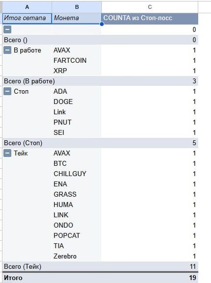 Таблицу закончил заполнять. Итог по сетапам на сейчас такой: