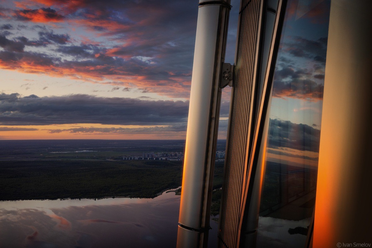 Вот в такой незабываемой атмосфере мы делали репортаж о смотровой площадке небоскрёба «Лахта Центр». Благодарим Ивана Смелова за эти чудесные кадры. #лахтацентр #фото 😊 Небоскрёбы России