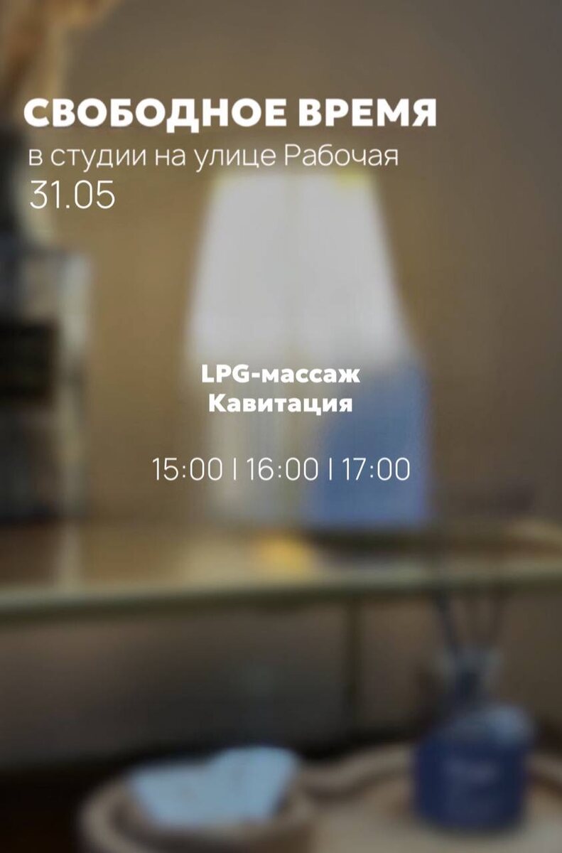 СВОБОДНОЕ ВРЕМЯ НА РАБОЧЕЙ 31.05 • ONLINE запись • WHATSAPP Ждём вас к нам на процедуры 🤍