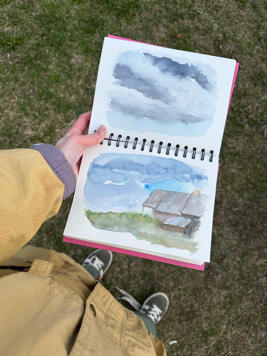 Главная тема майских публикаций художников в соцсетях А ты сезон открыл? А чем рисуешь? А на чем? А сколько часов? Этюды покажешь? Если на фоне всеобщего обсуждения вы все еще не вышли на пленэр, то позвольте восхититься вашей стойкостью. Меня настроение писать на природе застало в деревне у родственников. С собой была только акварель и простые графитные карандаши, но я обошлась лишь красками. Быстрые зарисовки с натуры люблю делать сразу в цвете — главное уловить тоновые и цветовые отношения. Идеальная точность пропорций не так важна, поэтому в карандашном наброске в данном случае смысла не вижу. Результатом первого пленэра я осталась недовольна. Ни в цвет, ни в тон не попала. А вот следующие попытки были куда лучше. Оцените сами, выглядят приятнее и целостнее. На веранде увидела симпатичную люстру. Вензеля вырисовывала долго. Надеюсь, в скором времени покажу вам новые работы с уже летних пленэров или натюрморты с натуры. А вы что рисовали в мае?)