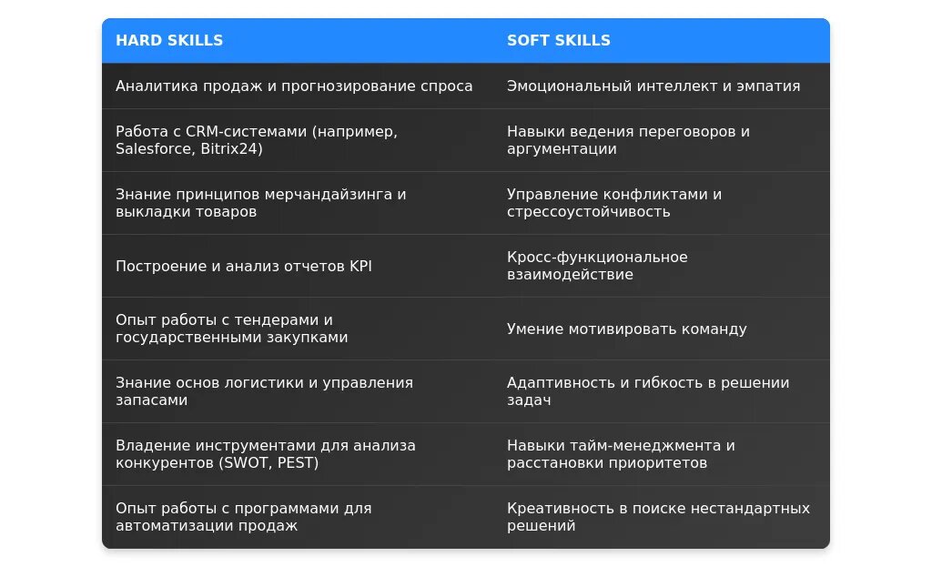 Личные качества (soft skills) играют важную роль в успехе менеджера по продажам. Они помогают эффективно взаимодействовать с клиентами и командой.