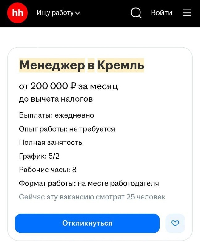 😎 КРЕМЛЬ ОТКРЫЛ ВАКАНСИЮ МЕНЕДЖЕРА — ЗАРПЛАТА 200 000 РУБЛЕЙ И НИ ОПЫТА, НИ ВЫСШКИ НЕ ТРЕБУЕТСЯ