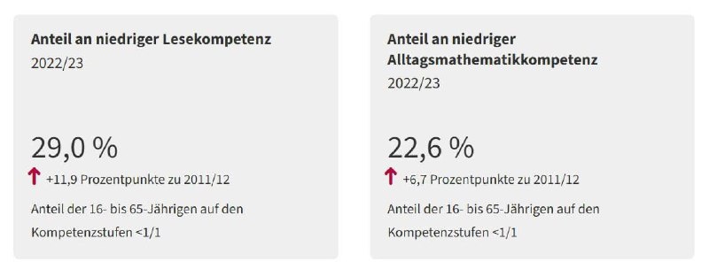 Согласно данным, опубликованным Статистическим управлением Австрии, почти треть населения страны испытывает трудности с чтением. В частности, 29% австрийцев обладают крайне низким уровнем чтения, что является тревожным сигналом для общества. Более того, этот показатель увеличился на 11,9% по сравнению с результатами исследований, проведенных в 2011 и 2012 годах. Это означает, что все больше граждан сталкиваются с проблемами в понимании текстов и работе с информацией. Еще одной проблемой, выявленной в исследовании, стало снижение уровня математических навыков среди населения. За последние десять лет процент людей с низкими математическими способностями возрос с 15,9% до 22,6%. Этот факт указывает на то, что значительная часть населения испытывает затруднения при решении даже базовых математических задач. Такие результаты подчеркивают необходимость принятия мер по улучшению образовательной системы и повышению грамотности населения в Австрии.