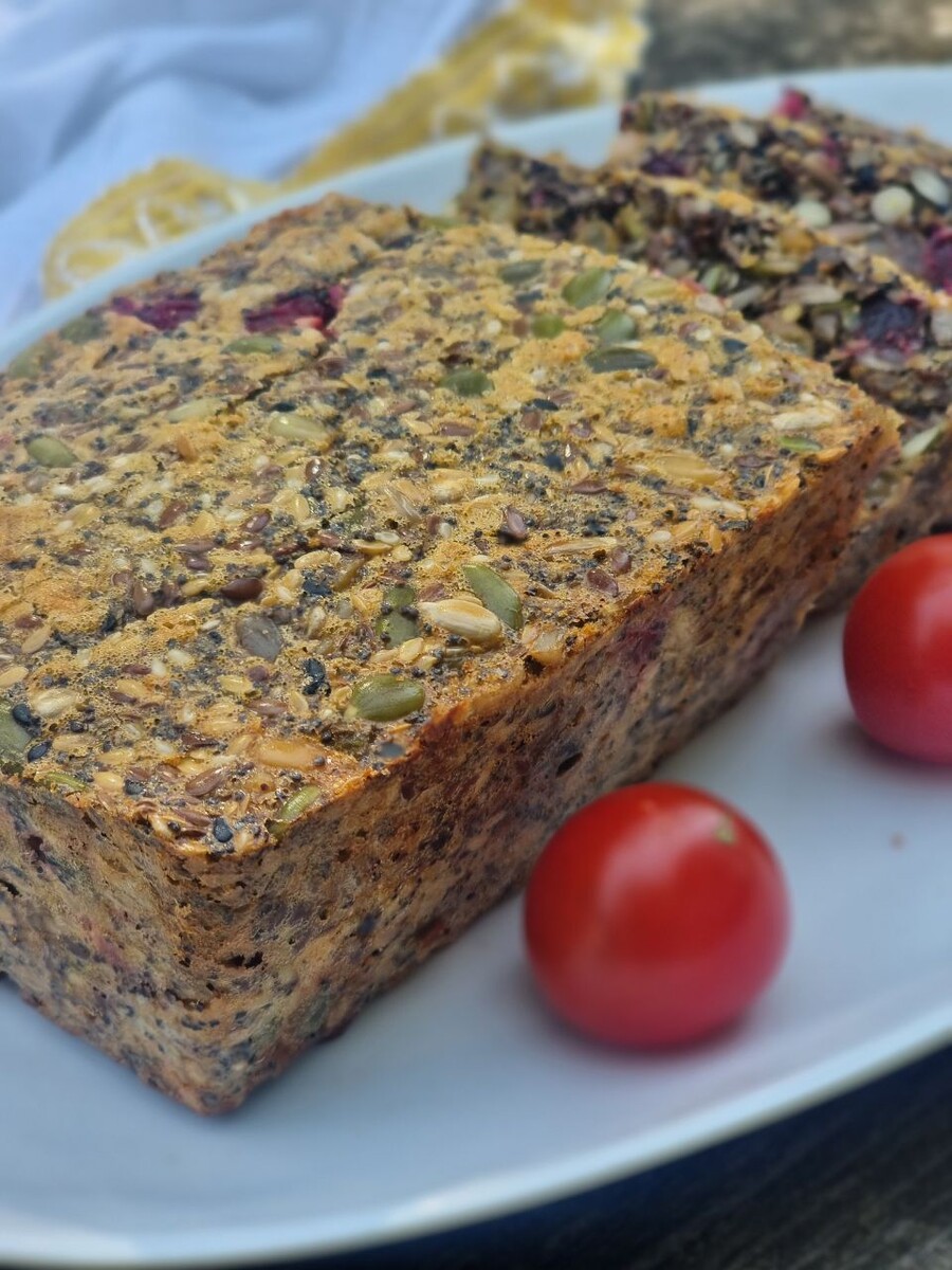 Недавно со мной поделились рецептом зернового хлеба без муки, а так как я вечно стройнеющая мадама, он сильно меня заинтересовал. Кто подписан на мой канал давно, знает, что я готовлю только по простым рецептам: если вижу в ингредиентах что-то типа семена корней маниока, лепестки клитории или саго (я даже не понимаю, это овощ, фрукт, специя или сироп), такой рецепт я забраковываю сразу. А вот если там все просто и понятно, милости просим к нам за стол отведывать новое блюдо. С зерновым хлебом все сложилось! И просто, и быстро, и вкусно (мне). ИНГРЕДИЕНТЫ: Семена: подсолнечника - 60 г тыквы - 60 г льна - 60 г кунжута - 60 г чиа - 20 г кедровые орехи - 20 г мак - 20 г клюква - горсть изюм - горсть яйца - 4 шт щепотка соли ГОТОВИМ Разогреваем духовку до 170 градусов. Берем большую миску, взбиваем в ней вилкой яйца, засыпаем все оставшиеся ингредиенты, смешиваем и ВСЁ! Даем тесту постоять 10 минут, еще раз его перемешиваем и переливаем в силиконовую форму. Отправляем в духовку на 40