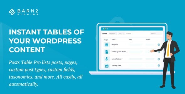 Barn2 Media Posts Table Pro v3.3.5 Posts Table Pro от Barn2 Media - Универсальный инструмент для создания интерактивных таблиц в WordPress Posts Table Pro от Barn2 Media — это мощный плагин для WordPress, который автоматически создает интерактивные таблицы для отображения различных типов контента. Он идеально подходит для сайтов, которым нужно представлять информацию в структурированном виде, будь то записи блога, товары WooCommerce, страницы, медиафайлы или другие пользовательские типы записей. Пользователи могут легко создавать таблицы с поиском и сортировкой, фильтровать данные по категориям, тегам и другим параметрам. Плагин поддерживает встроенные аудио- и видеоплееры, что позволяет воспроизводить контент прямо из ... Читать далее Скачать Barn2 Media Posts Table Pro Подпишись на наш Telegram канал